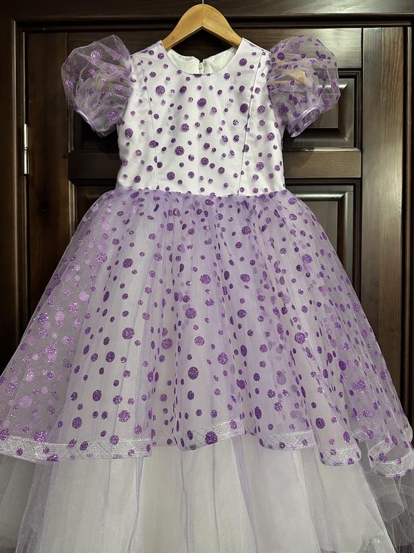 Детское праздничное платье “Лаванда” – это идеальный выбор для маленькой принцессы. Нежный белый цвет в сочетании с фиолетовыми блестками создает сказочный образ. Верх платья выполнен из приятной на ощупь ткани, а пышная юбка состоит из нескольких слоев фатина, что добавляет ей легкости и объема. Прозрачные рукава с блестками придают платью элегантность, а блестящие фиолетовые кружочки делают ее особенной. Удобная застежка-молния на спинке позволяет легко надевать и снимать платье. Эта модель идеально подходит для праздничных мероприятий, дней рождения, фотосессий и выпускных в детском саду. Благодаря высокому качеству материалов и удобному крою ваш ребенок будет чувствовать себя комфортно и стильно. Длина платья 100 см. Обхват грудной клетки 72 см. Размер 140 см. Размер корсетика регулируется завязками на спинке. Возможна примерка в городе Тетиев