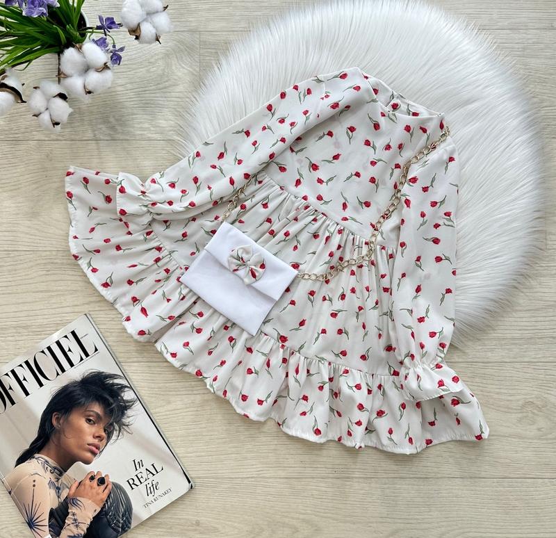 Невероятное цветочное платье 🌸🌸🌸 Воздушная, нежная и стильная 🩷🩷🩷 Пышная юбка 😍 В комплекте сумочка 👛 Сзади застежка пуговица 👌🏻В рукавичках резиночка ☺️ Тканина: софт 💓 Производитель: Украина 🇺🇦 ЗАМІРИ +/-1-2см!!! ▪р.98- длина от плеча 52см/ рукав от плечевого шва 37см / ПОГ 27см ▪р.104- длина от плеча 58см/ рукав от плечевого шва 39см / ПОГ 28см ▪р.116- длина от плеча 65см/ рукав от плечевого шва 42см / ПОГ 31см