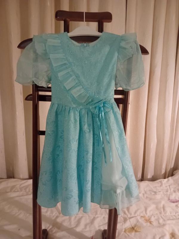 Нарядное платье для девочки на праздник в садик. на фото цвет подключился более бледный, в живую насыщенный голубой. Подкладка Х/Б. заміри. Длина по спинке от плеча 64см. плечи 25см. длина до талии 25,5см. от талии 39см. НОГ 32см. НОТ. 30см. Ответим на все вопросы.