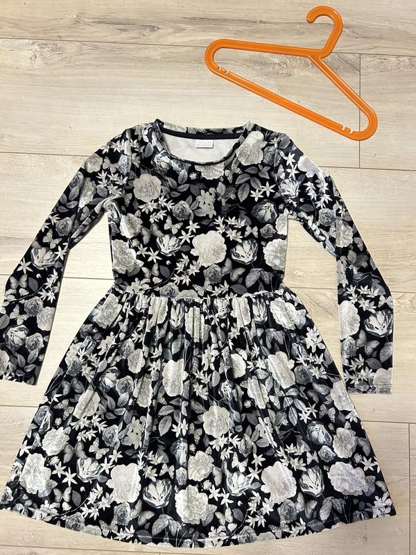 Гарна сукня для дівчинки 8-9р. Тканина велюр, трохи відблискує та переливається. Без застібок, кишень, ґудзиків Стан чудовий Довжина - 70 Рукав - 48 ПОГ - 34,5