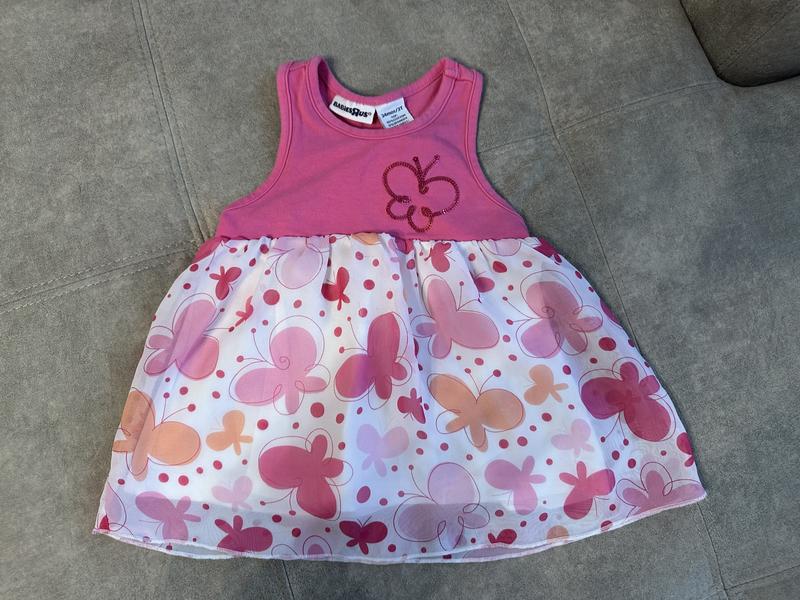 Продаю многие фирменные одежды, которые приобретали в Америке. Вся одежда для малышей, в своих объявлениях, после одного мальчика и после одной девочки. Яркое платье, длина 38 см, ширина 24 см, на юбке есть небольшие затяжки наост фото