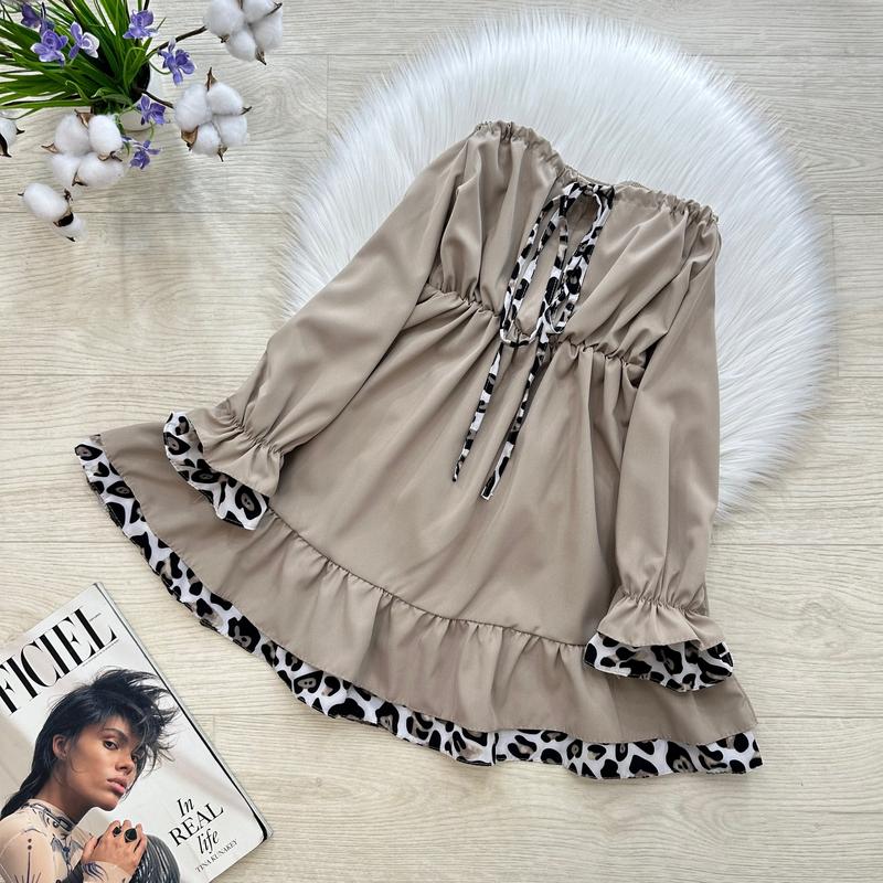 Крыловая Стильное воздушное платье ЛЕО 🤩🐆🤩🔝🔝🔝 Объемные рукава, на резиночке 💛 Спереди вырез регулируется кулисками 👌🏻 В поясе резиночка😌 Тканина: софт 🤎 Производитель: Украина 🇺🇦 ЗАМІРИ ⤵ +/- 1-2см!!! р.134- длина платья от плеча 66см/ рукав от плечевого шва 52см/ ПОГ 32см/ длина юбки 42см р.146- длина платья от плеча 75см/ рукав от плечевого шва 58см/ ПОГ 35см/ длина юбки 45см р.152- длина платья от плеча 77см/ рукав от плечевого шва 62см/ ПОГ 37см/ длина юбки 46см