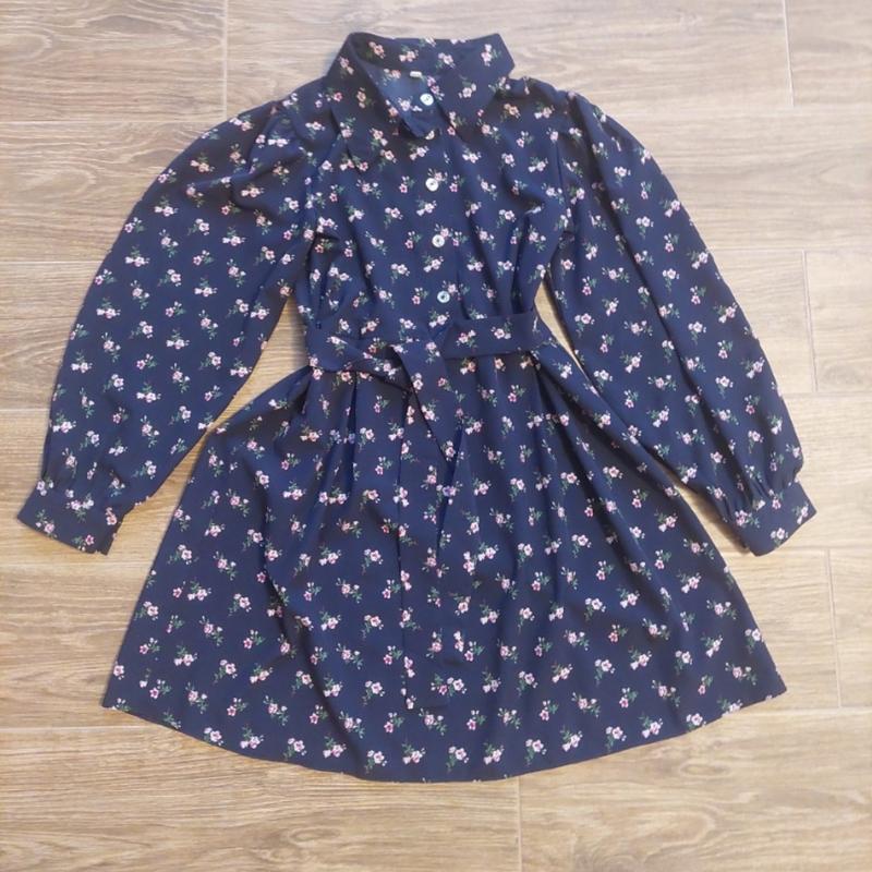 Красивое легкое платье в цветочный принт, имеет поясок который снимается, одевается 1 раз длиж. 70 пот 38 рукав 49