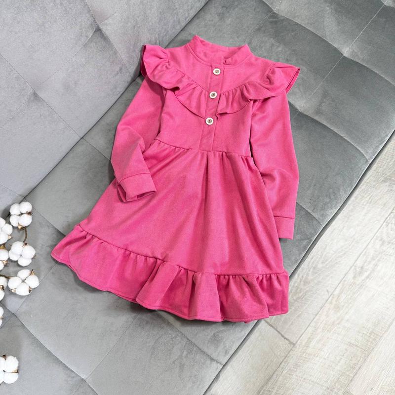 Платье замша-диагональ, ярко розовое. Ткань очень приятная к телу. Не линяет, пуговицы спереди. Поясок в комплекте - вынимается, можно завязать сзади или впереди на бантик. Производитель Украина. 📐Замеры: 116 - длин. 63 / полуобхват 32/рук. 42 122 - длин. 65 / полуобхват 33 /рук.45 128 - длин. 69 / полуобхват 34 /рук.46 134 - длин. 71 / полуобхват 35 /рук.49
