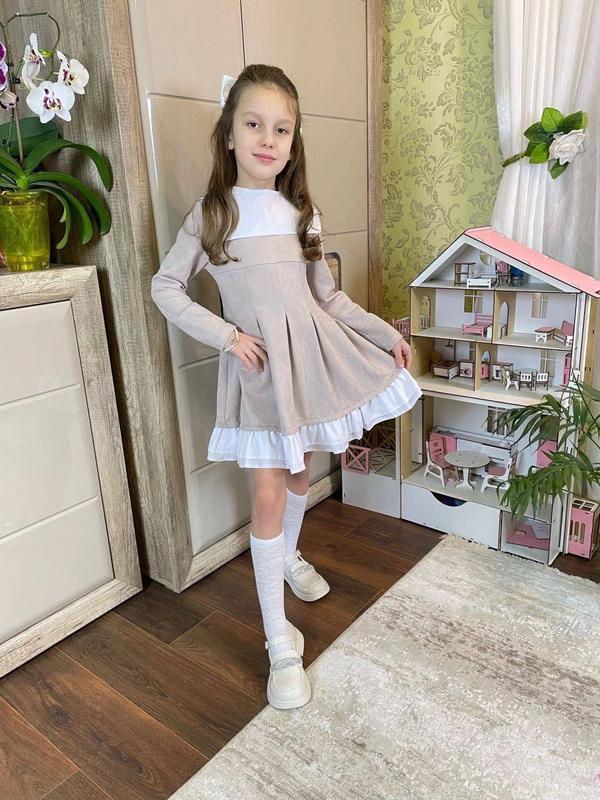 Изысканное платье для красавиц Ткань замш диагональ, мягкая и приятная к телу, воротник снимается Сзади застегивается на молнию Качество супер Замеры: длина/ширина под руками/рукав от плеча 128 - 66/31/44 134 - 67/33/46 140 - 68/35/49