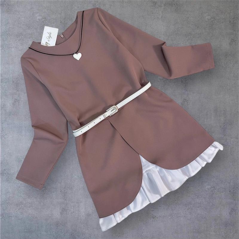 Трендова сукня ткань костюмка Барби. Украшение и ремень входят в комплект. Супер качество Рост 134-2шт 140-2шт 146-1шт 152-2шт