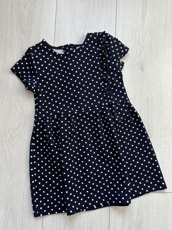 Темно синее платье в горошек, сзади с пуговицами Ориентировочно на возраст 4-5 лет Замеры на фото