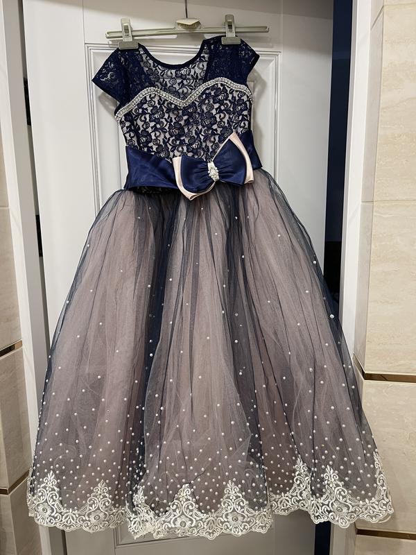 Дуже гарна та вишукана. Довжина - 107 см, під грудьми - 35 см, затягується корсетом. В деяких місцях порваний фатин, який професійно зашитий прозорою ниткою. Ці нюанси видно лише зблизька якщо добре придивитися, бо знаходяться в місцях нашарування фатину, або біля мережива.
