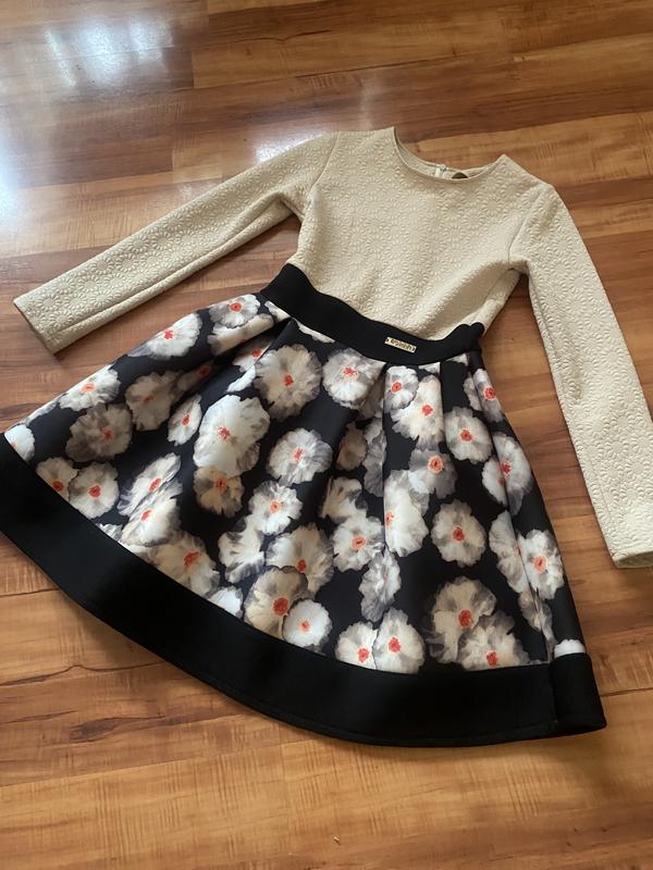 Платье в хорошем состоянии. На рост примерно 140 см. Ткань не тонкая. Юбка держит форму. Размер не указан.