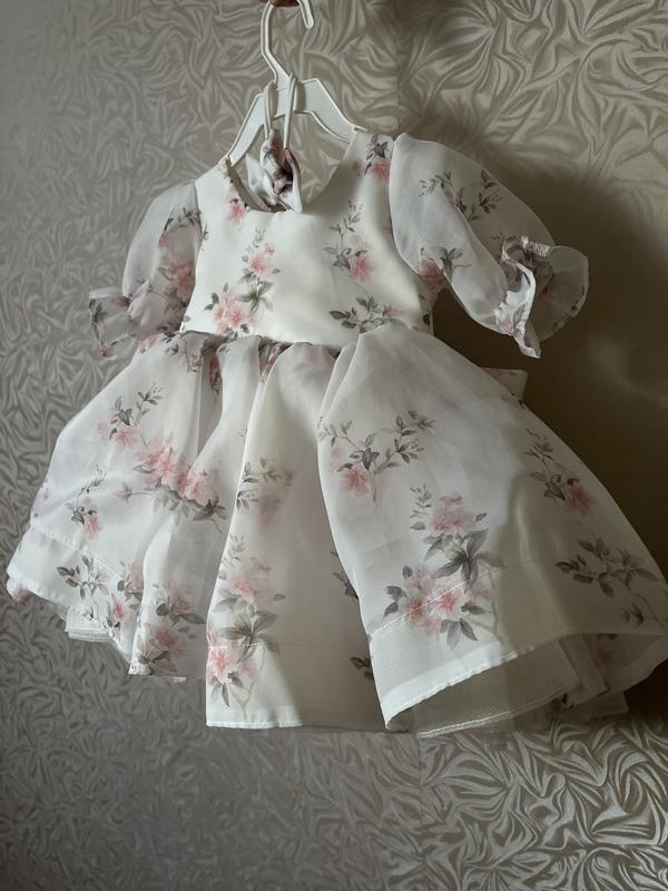 Неймовірна сукня для дівчинки! В ідеальному стані, одягалась лише 1 раз, для фото. Дуже красиво виглядає на малечі, на свято підійде ідеально, легенька та зручна в комплекті із повʼязкою. Сукня була виконана під замовлення, підійде на розмір від 74см-80см! Додаткові заміри: Обхват грудей - 47см Талія - 45см Зріст - 75см