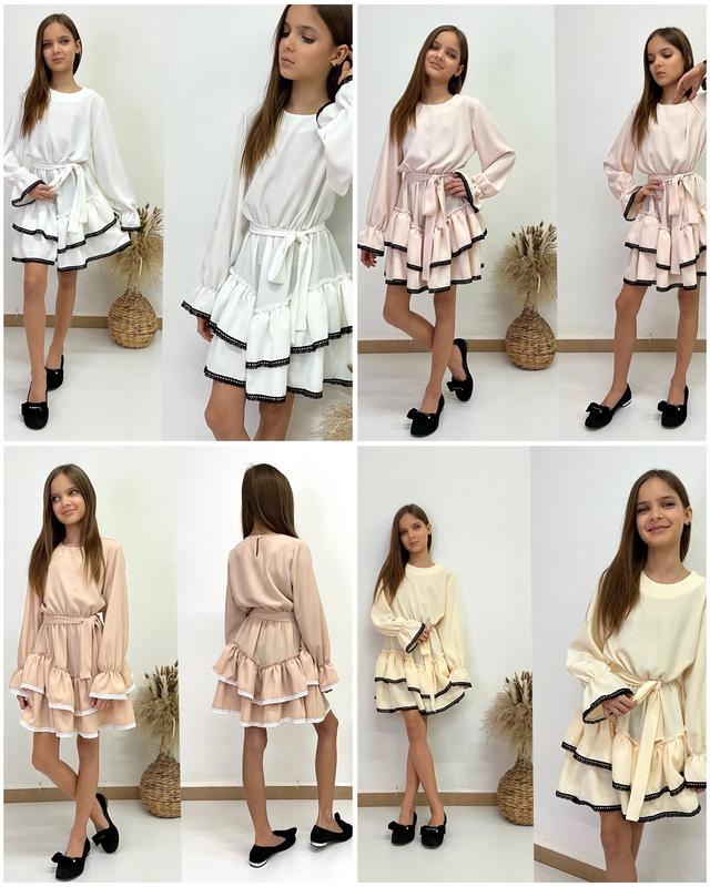 Красивое платье с пышной юбочкой в талии под резиночку и поясок застегивается постановка на пуговицу Ткань Французский костюмный креп украшена хлопковым кружевом ГАРНАЯ КАЧЕСТВО! цена 870 грн рост/длина/пог/рукав от плеча похибка+-2см 140/71/39/50-1шт 146/74/4053-1шт 152/79/41/56-1шт 158/85/43/60-1шт