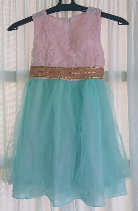 Сукня рожево-блакитна. Не слишком пышная.На 3-5 лет (Ориентируйтесь по замерам). Юбка в 3 слоя. Заміри на фото. Можно как на праздник, так и повседневно. Состояние новой вещи.Только надо погладить. Дополнительные фото и замеры по запросу.