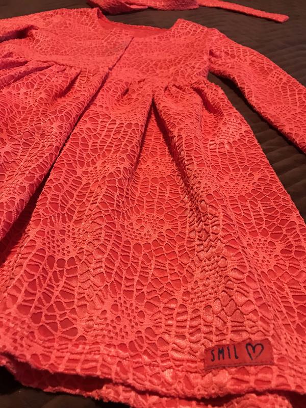 Праздничное платье на длинный рукав с пояском для девочки 104 роста 4-5 лет. Защелкивается на груди на кнопках. Замер длина изделия по спине 60 см. пол обхват груди 32 см. низ свободный.