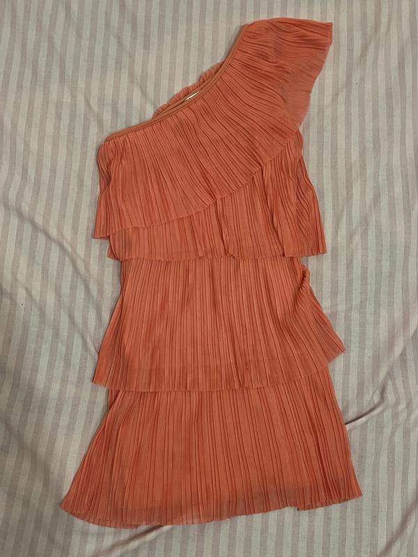Коралловое платье для девочки на одно плечо. В жизни у нее более приятный цвет и не такой оранжевый. На теле смотрится очень красиво, но я небольшое пятно. Длина- 52 см