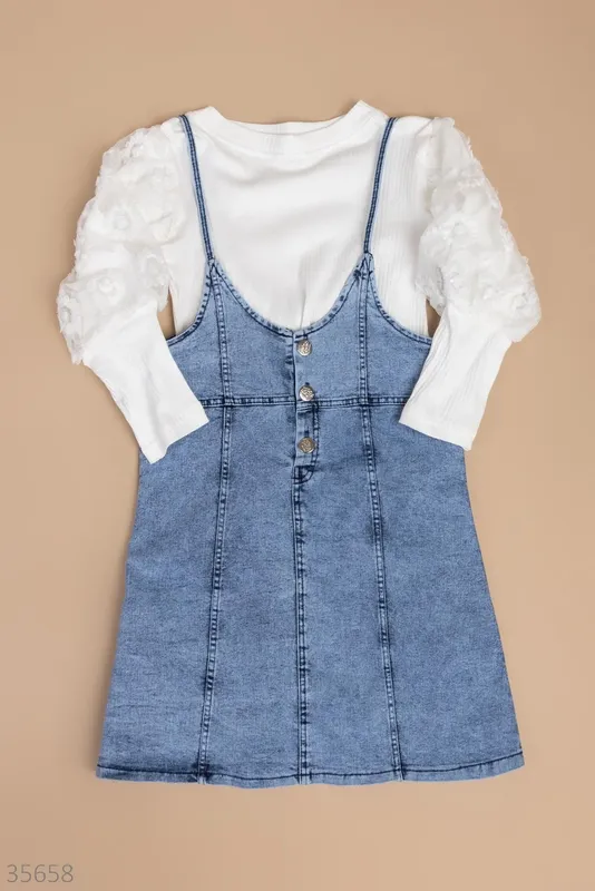 Цвет: белыйсиний Материал: коттон Лямки не регулируются Страна производитель: Турция Размерная сетка: 7-10 лет, 128-146 см Замеры: ---7 лет, 128 см --- Кофта - рукав 41 см (от горловины), ПО груди 32 см, длина 44 см. Платье - ПО груди 33 см, ПО талии 35 см, длина 69 см. --- 8 лет, 134 см --- Кофта - рукав 44 см (от горловины), ПО груди 34 см, длина 47 см. Платье - ПО груди 34 см, ПО талии 36 см, длина 73 см. --- 9 лет, 140 см --- Кофта - рукав 51 см (от горловины), ПО груди 36 см, длина 49 см. Платье - ПО груди 35 см,ПО талии 36 см, длина 75 см. --- 10 лет, 146 см --- Кофта - рукав 51 см (от горловины), ПО груди 37 см, длина 51 см. Платье - ПО груди 37 см,ПО талии 38 см, длина 77 см.