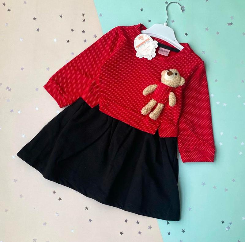 Сукня з ведмедиком (знімний) 98 см дов 50,5, шир 28, рук 30 104 см дов 52, шир 29, рук 31,5 110 см дов 53,5, шир 30, рук 33
