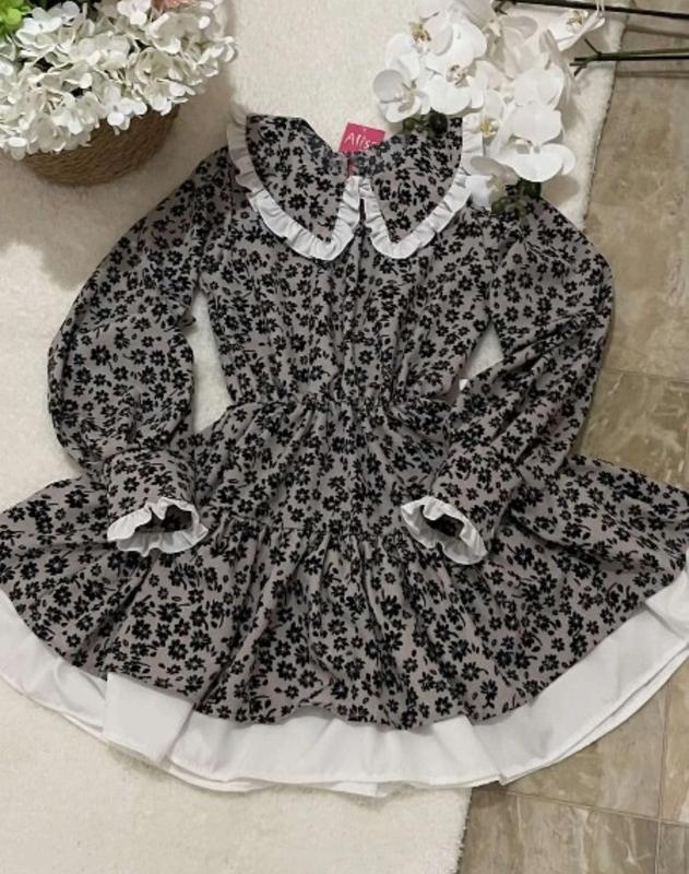 Красивое платье для юной красавицы Тканина софт (не тягнеться) Украшена воротничком По низу белая ткань трикотаж, придает романтичность образу КАЧЕСТВО ЧУДОВА!! РЕКОМЕНДУЮ!!! кки разм/длин/пог/рукав от плеча 128/68/42/53 140/71/44/56 152/74/45/57