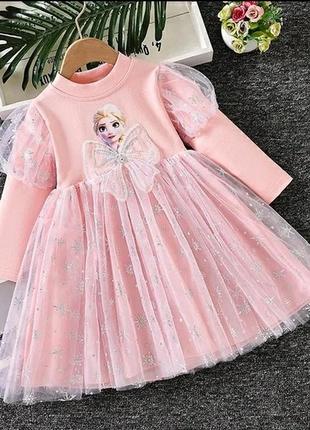🌹платье "Эльза" 🌹 верх: стрейч коттон, тягнеться низ: два слоя фатина + подкладка украшено глиттерными рисунками завязывается пояс ЗАМІРИ длина полная/ширина по груди/рукав от плеча ✅130р 69/32/39 НАЯВНОСТЬ 130р 2шт