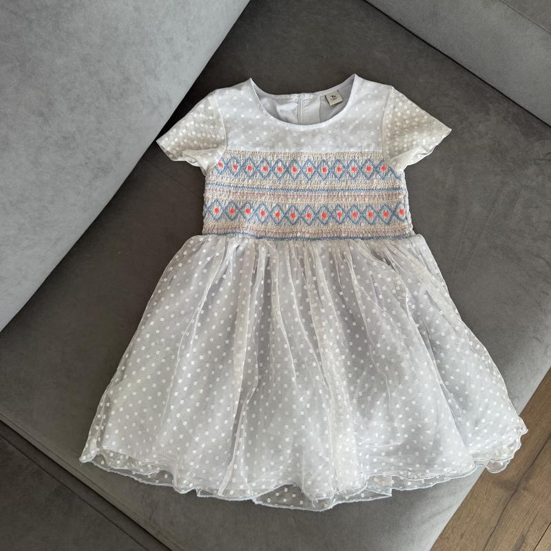 Классное платье фирмы Tu. На возраст 4-5 лет. Длина 59 см, плечи 25 см, ширина 28 см.