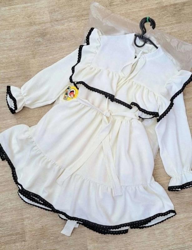 Нежное платье для девочек В поясе резинка, поясок в комплекте. Ткань: креп-жатка, хорошего качества. Замеры: 134 длина - 74см, полуобхват груди - 39см, рукав от плеча - 45см. 140 длина - 76см, полуобхват груди - 40см, рукав от плеча - 48см. 152 длина - 82см, полуобхват груди - 43см, рукав от плеча - 55см. Мс