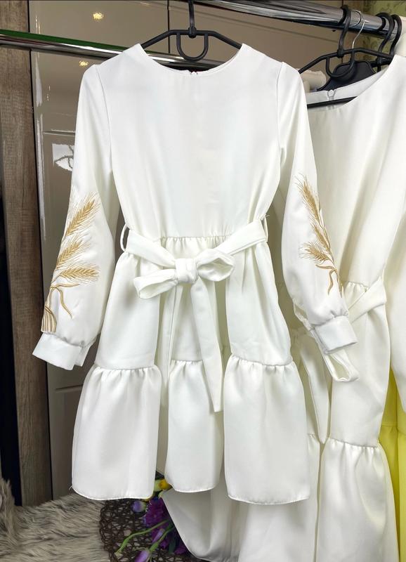 Ніжна сукня з вишивкою для красунь 💗 Застібається по спинці на блискавку, зав'язується під поясок тканина костюмка барбі КОЛІР МОЛОЧНИЙ Заміри : Довжина/пог/рукав від плеча 122 - 65/33/44 - 1 Ян
