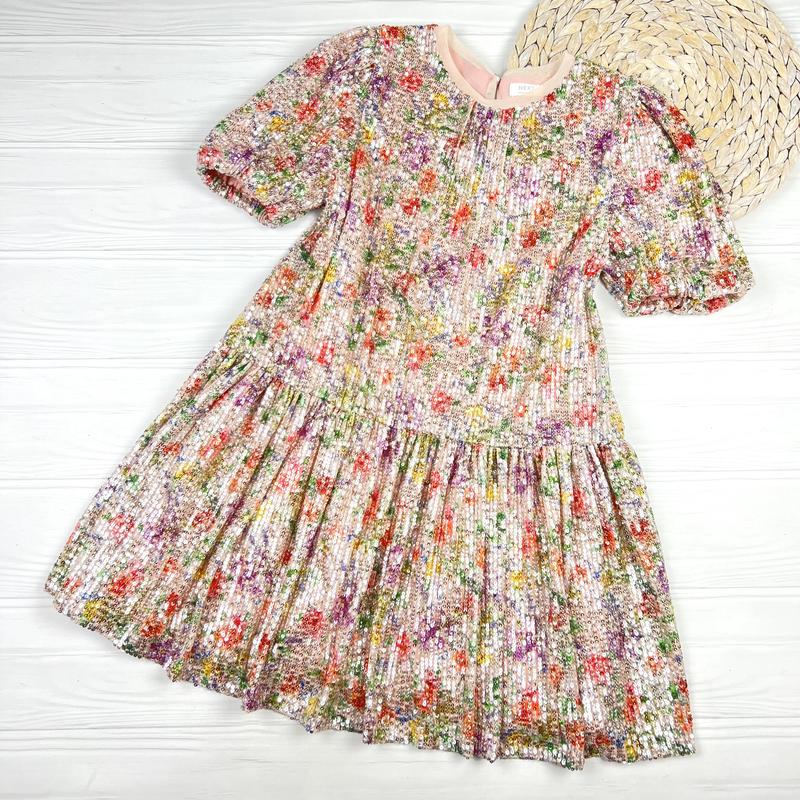 Сияющее платье с цветочным принтом от Next на 6 лет, 116 см. ▪️более идеальное состояние ▪️цена сайта 97 42- 1834 грн, на снижении 97 18- 786 грн. ▪️верхняя ткань 95 полиэстер и 5 эластан ▪️подкладка 100 коттон ▪️изделия. Турция 🇹🇷 Плечи 27 Пог 34 тянется Длина до юбочки 38 Длина 65.5