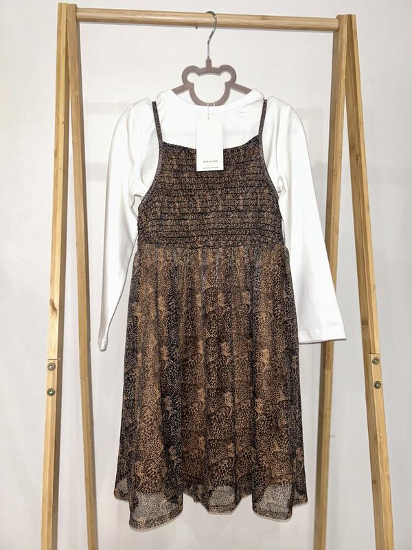Акція! РОЗПРОДАЖ ! Ціна літа ! ✨Сукня з регланом ( пришиті) , сукня з підкладкою не світиться ✨ Вік: 6/7 років Зріст: 122 см Довжина-71 см Пів обхват грудей- 35 см тягнеться Рукав від горлишка- 47 см Від плеча до плеча- 28.5 см