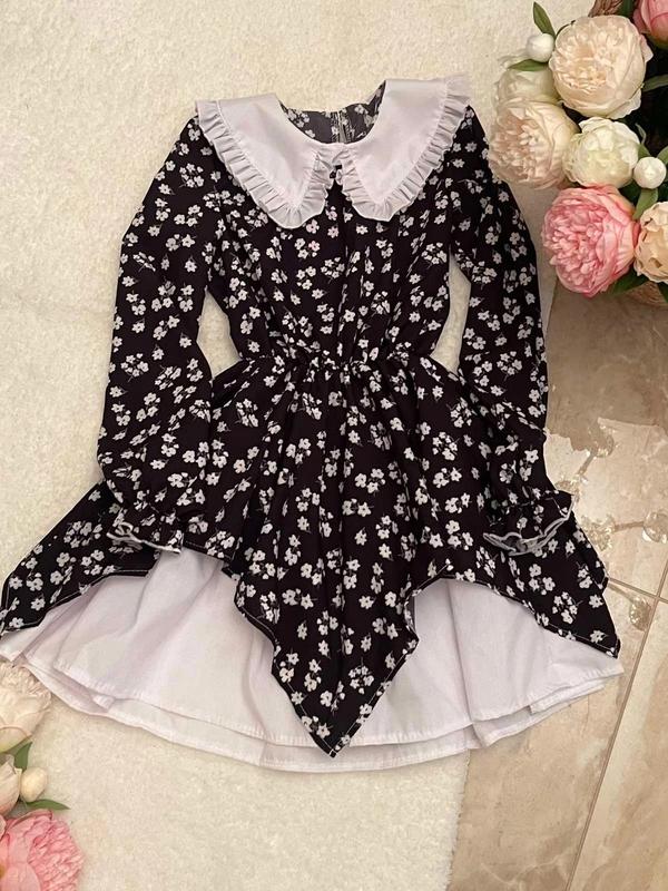 💙💛 Цена 690 грн🔥 Стильное платье для красавиц💗 Тканина софт Украшена воротничком По низу белая ткань трикотаж, придает романтичность образу Замеры: длина\пог\рукав 128-134р - 67/40/50