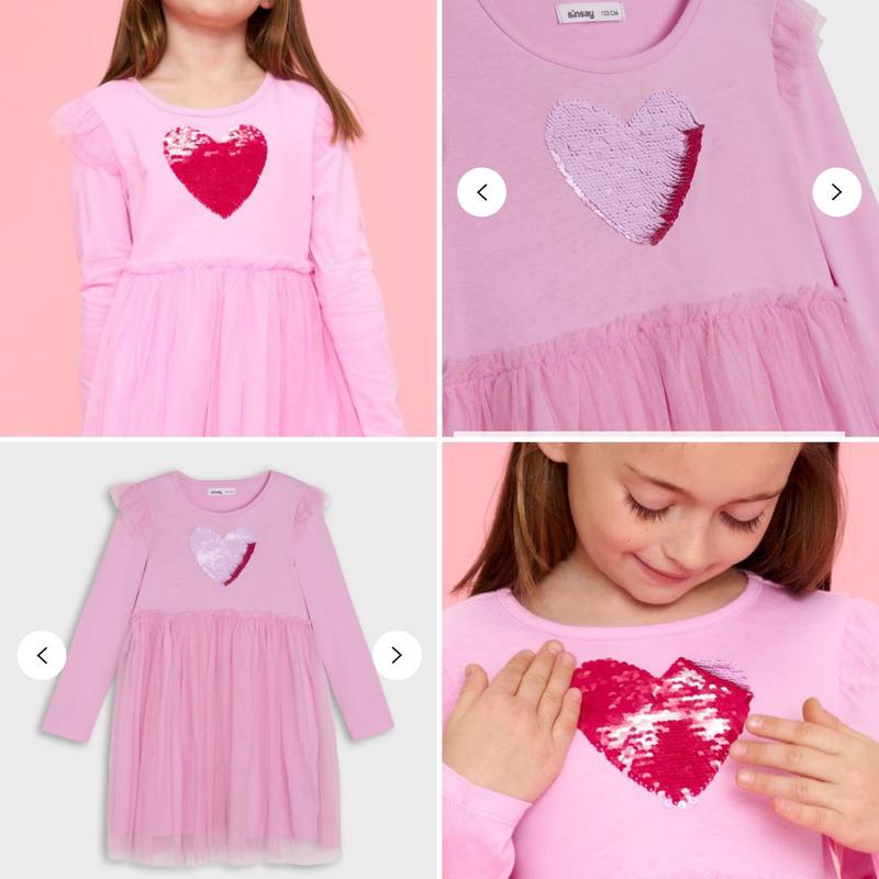 Очень красивое платье, яркое с пайетками в форме сердечка..