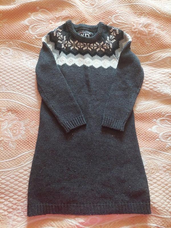 красивое теплое платье с орнаментом для девочки, длина рукава от горловины 53 см, длина платья 72 см.