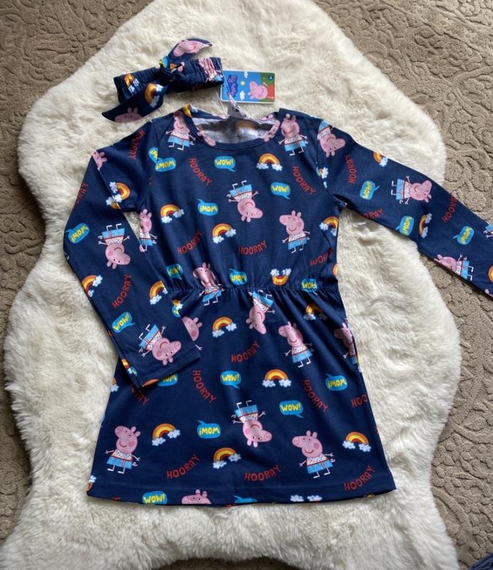 Нова сукня , бренду Peppa pig На возраст по бирке 3-4 рочки Изготовлена из хлопка, в поясе резинка. Поваренная -солоха на резинке. В спокойном состоянии 29 см.