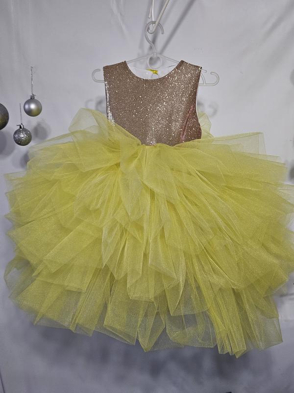 Желтое платье из фатина пышное гарядное блестящее платье на 5 лет платье в садик