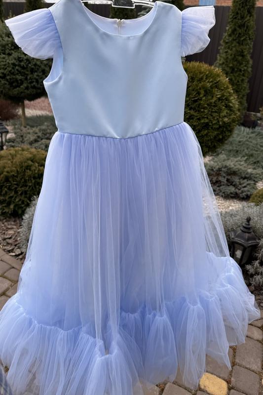 Чарівна нарядна небесно-блакитного кольору сукня відомого українського бренду Maya-Mi. В ідеальному стані, одягнена 1 раз. Без жодних дефектів, як нова. Зберігається в фірмовому чохлі. Заміри: довжина-97 см, напівобхват по грудкі-34 см. Атлас+фатин, всередині бавовняна підкладочка. По бірці 134 см, буде і на 128, якщо дитинка худенька то і на 140. Сукня дуже якісна та ефектна!🌷