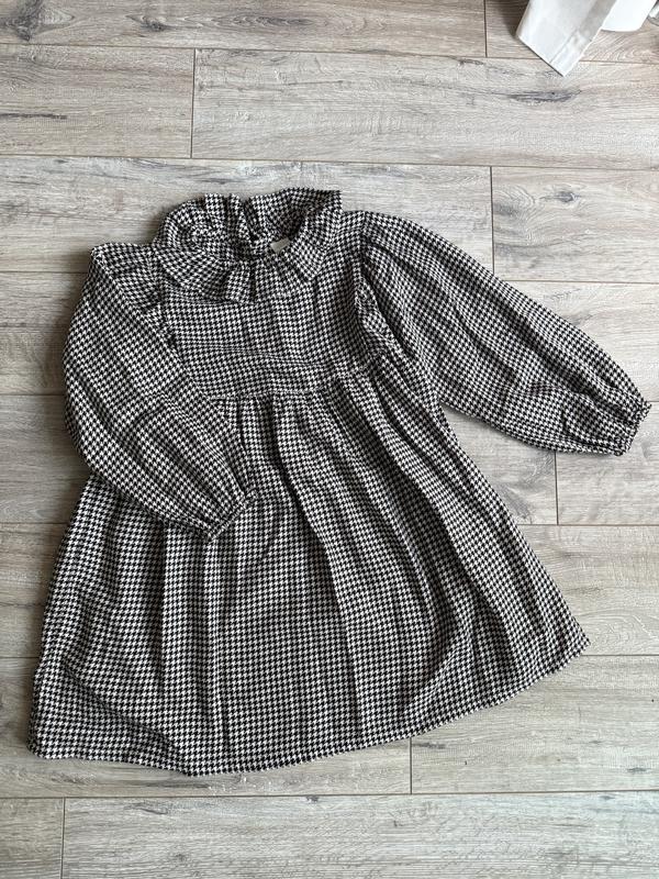Коттоновое хлопковое черно-белое платье с воротничком гусиное лапка в клетку платье с вола...