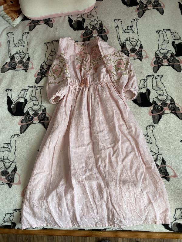 Продам нежно розового цвета вышитое платье, которое успели поносить, одеяли 2 раза