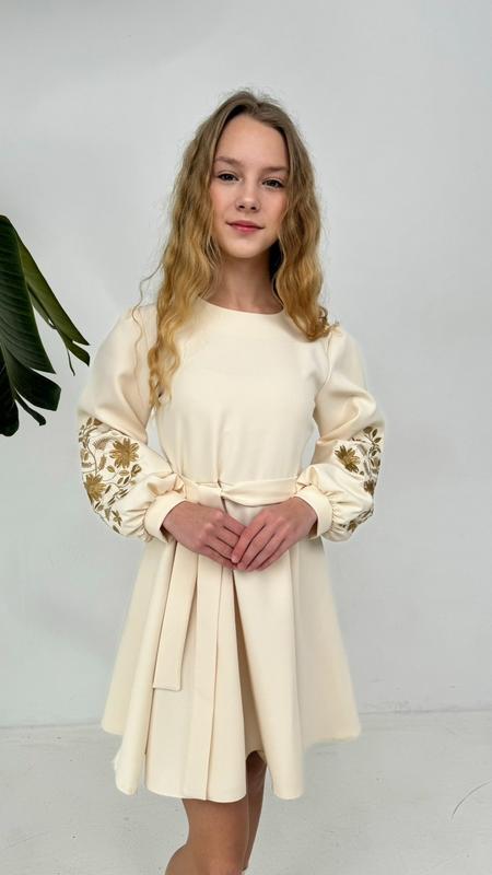 ландыш ✅️В НАЯВНОСТІ ♥️Красивое платье с современной вышивкой✨ Тканина: (костюмка) рукав на РЕЗИНЦЕ Размеры: ♥️140-длина платья 73, пог 36,рукав от плеча 44 ♥️146-длина платья 77, пог 38,рукав от плеча 46 ♥️152-длина платья 80, пог 40,рукав от плеча 48 ♥️158-длина платья 83, пог 42,рукав от плеча 51