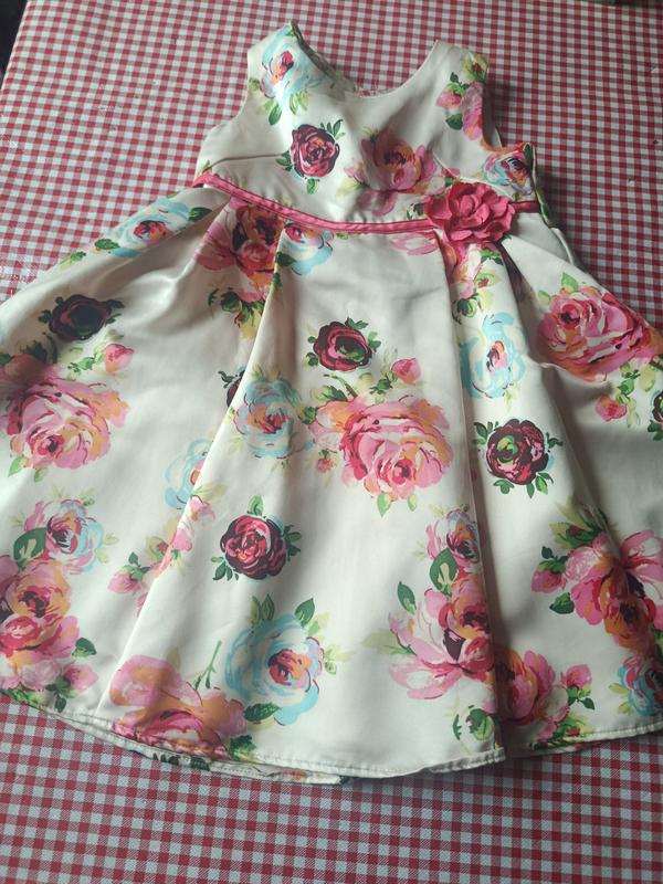 продам детское платье с поясом в цветочный принт, яркая, без нюансов