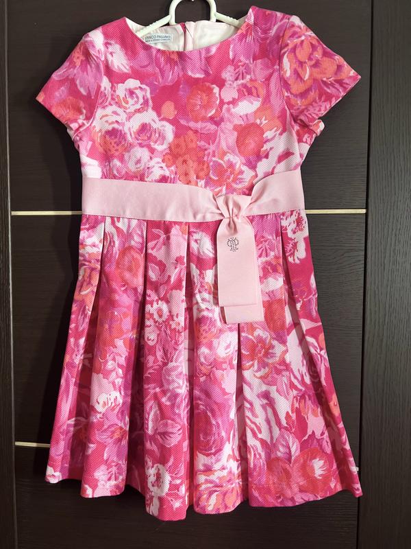 Новое платье I Pinco Pallino Очень оригинальное и нарядное платье. Склад - 97% бавовна, 3 % Еластан. Размер -8 (128-134 см) Верхняя часть платья на подкладке -100 % хлопок белая. Производитель - Италия