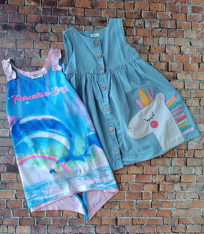 Хорошие летние платья Размер: 3-4 года Фирма: Next Состояние: на одном платье есть пятнышки, на фото показано Цена указана за 2шт