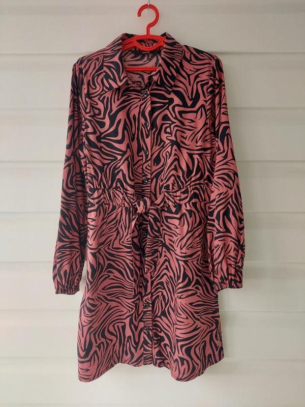 Детское платье с длинным рукавом принт зебра George. Имеет отложной воротничок, застежку на пуговицы по всей длине, широкий пояс на талии. Селад: 100% вискоза Возраст 7-8 лет ПОГ - 37см ПОТ - 31см ПОБ - 37см Рукав - 47см Плечи - 30см Длина - 72см