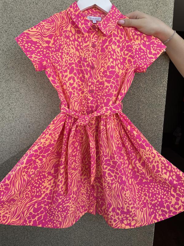 Яркое летнее платье на девочку 7 лет. Стан идеален. Застегивается на пуговицах, есть пасок. Длина 65, пог 34.