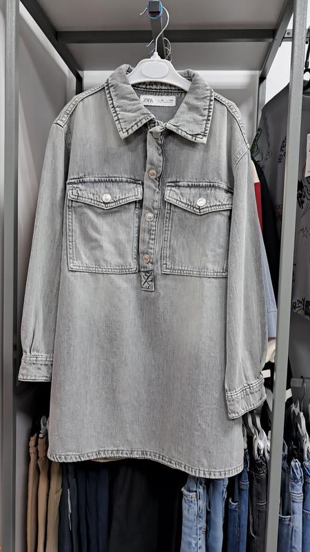 Платье светло серого цвета из плотного денима на пуговицах