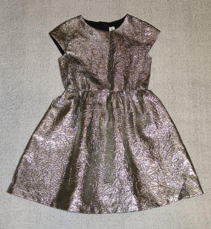 Платье TU на 5-6 лет - 79% полиэстер, 21% металлизированная нить. Подкладка внутри - 100% полиэстер. Идеальное состояние. Цена - 375 грн.* Замеры: длина от плеча - 61 см, ширина под ручками - 31,5 см, ПОТ - 30,5 см.