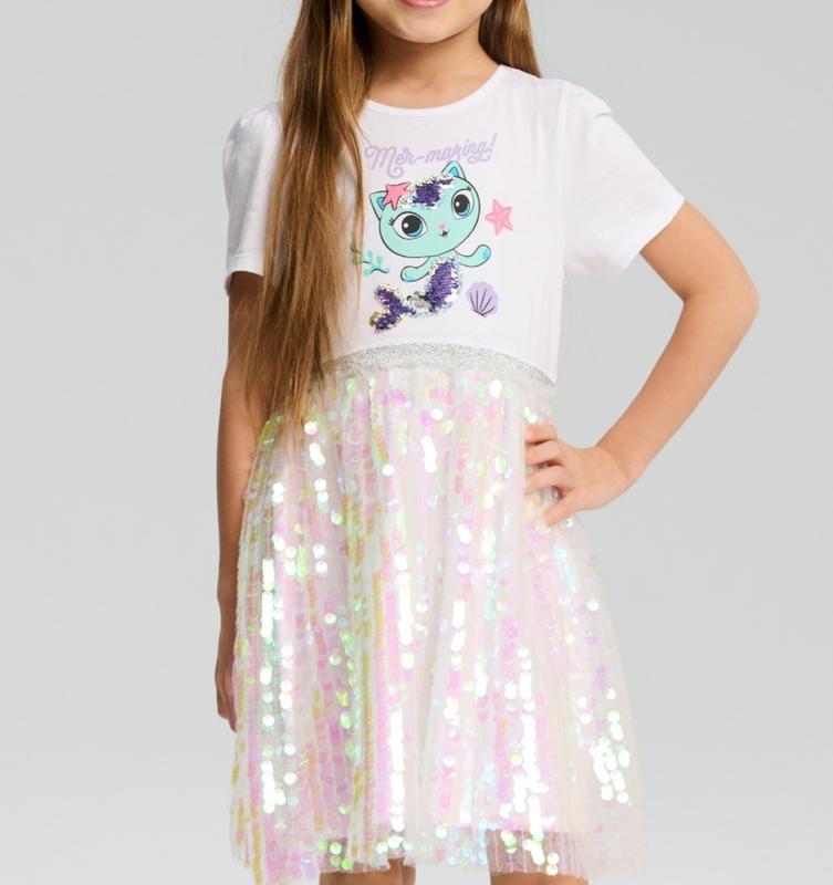 Фирменное платье с пайетками. Праздничная, крой расклешенный, резинка в поясе, металлизированная нить. Материал: 100% хлопок. Размеры: 104-140 (уточняете)