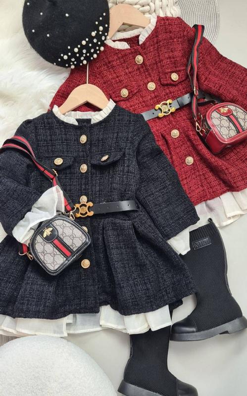 Стильное платье с ФЛИСОВЫМ подкладом. • Материал - твид. Подклад - флис. • Пояс в комплекті. Код: 23 • размеры и замеры: Длина платья полная/без белого канта. Длина рукава полная /без белого канта. 📍100 длина 56/49 ширина 30 рукав 35/31 - только черная 📍110 длина 61/55 ширина 31 рукав 40/36 📍120 длина 63/56 ширина 32 рукав 41/37 📍130 длина 64/58 ширина 34 рукав 43/38