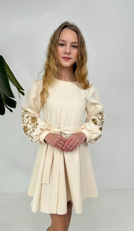 Красивое платье с современной вышивкой✨ Ткань: Барби (костюмка) рукав на РЕЗИНЦЕ Размеры: ♥️140-длина платья 73, пог 36,рукав от плеча 44 ♥️146-длина платья 77, пог 38,рукав от плеча 46 Греб
