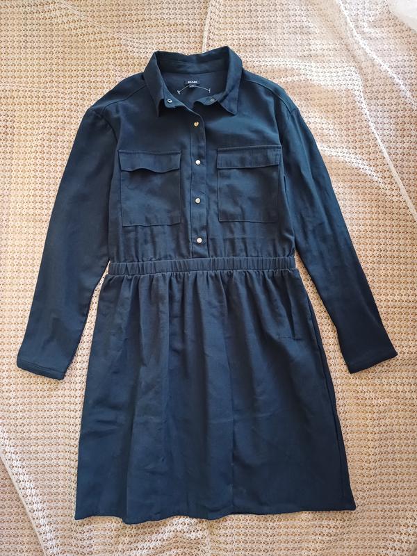 Темно-синее школьное платье Kiabi90%вискоза 10%полиэстер Ткань плотная, плотная На осень/весну, возможно демисезон с свитером Красивая модель, на груди накладные карманы До талии на кнопках В поясе резинка Красиво смотрится и с туфельками, и с кроссовками Состояние без нюансов Размер 12 лет на рост 146-152см Длина 84см, вил верха до талии 39см, рукав 50см, плечи 42см, под руками 41см, ПОТ 35см, ПОБ свободно, по максимуму 55,5см