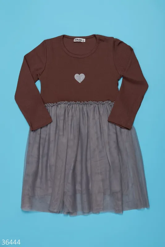Платье для девочек 24047 коричневое серое платье