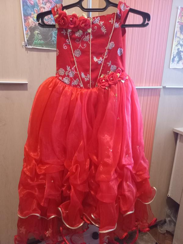 Праздничное платье на девочку Красное платье с цветочками, с пышной многослойной фатиновой юбкой и корсетом вышитым золотыми нитками Размер 122см Отлично подойдет для выпускного в садочку или на другие праздники