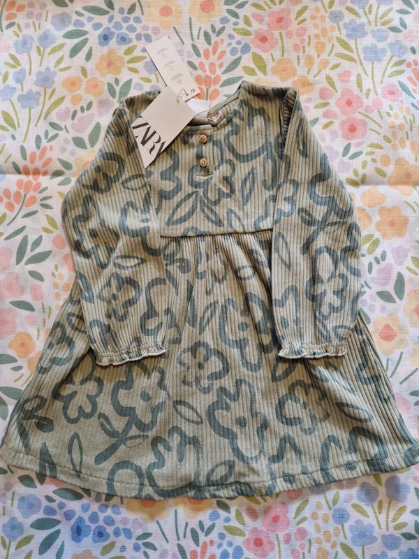 Новое детское платье Zara на возраст 2-3роки. Нежно зеленого цвета в крупные цветы. Подойдет на более прохладную погоду.